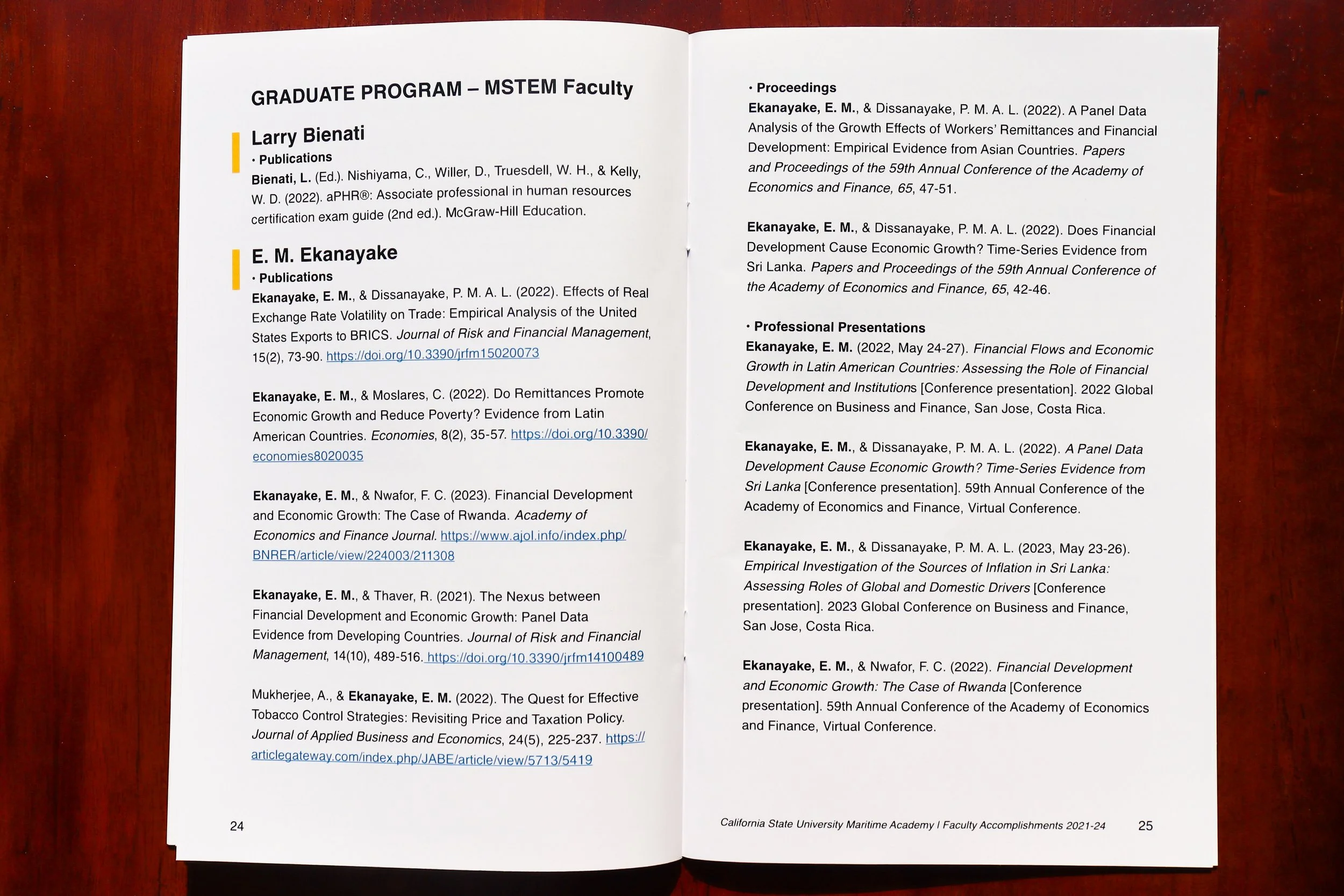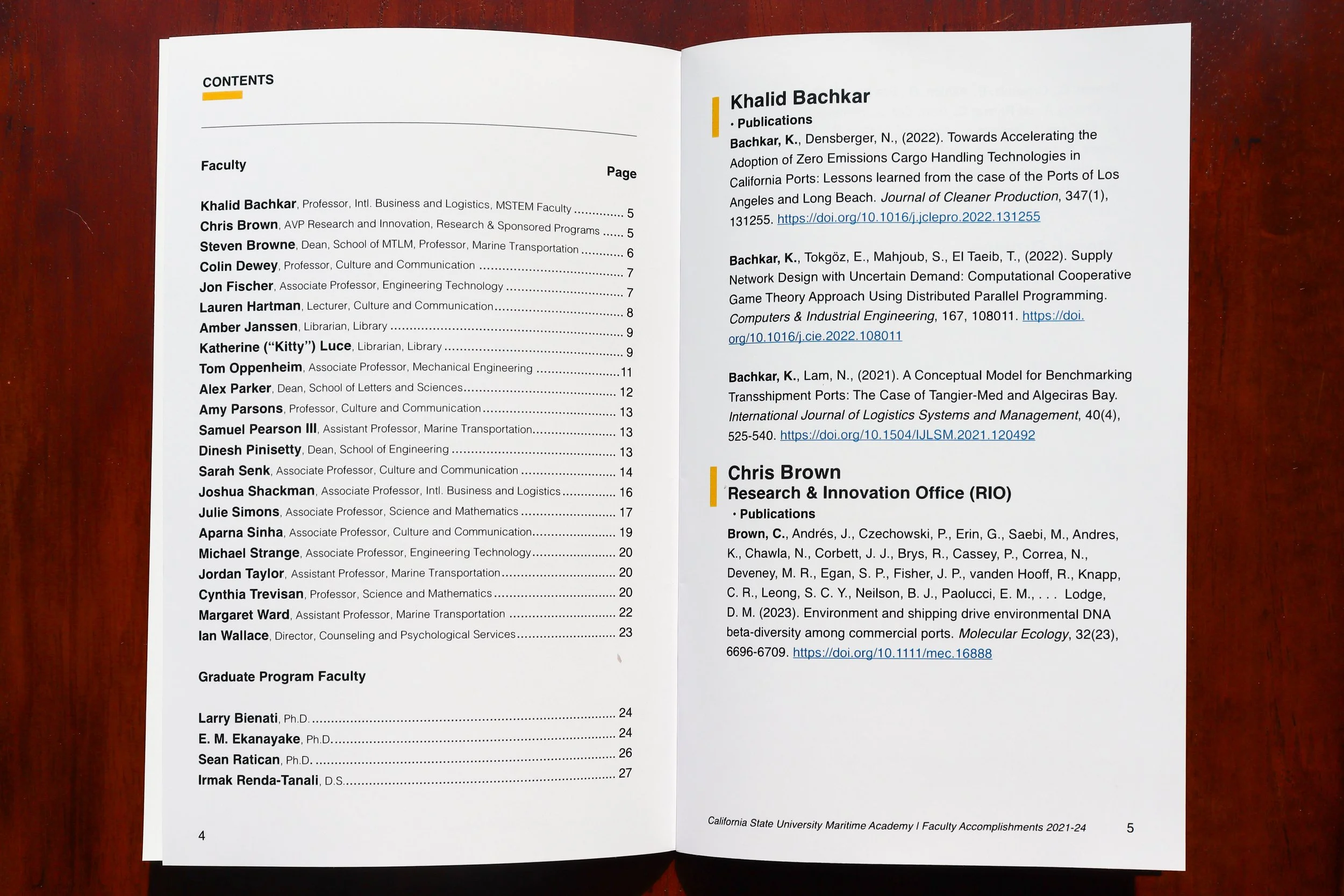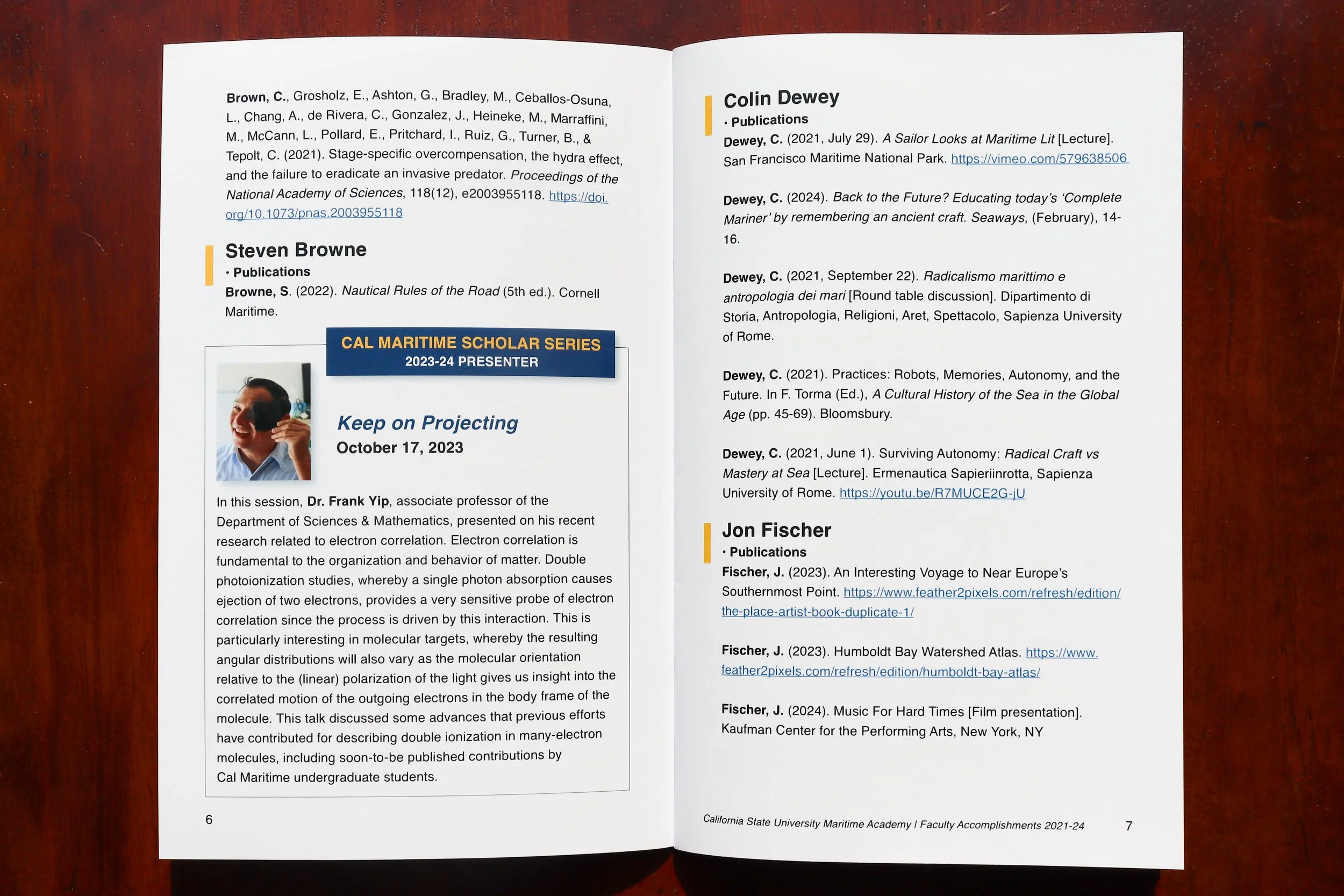 Faculty Accomplishments Booklet for Cal Maritime Library.